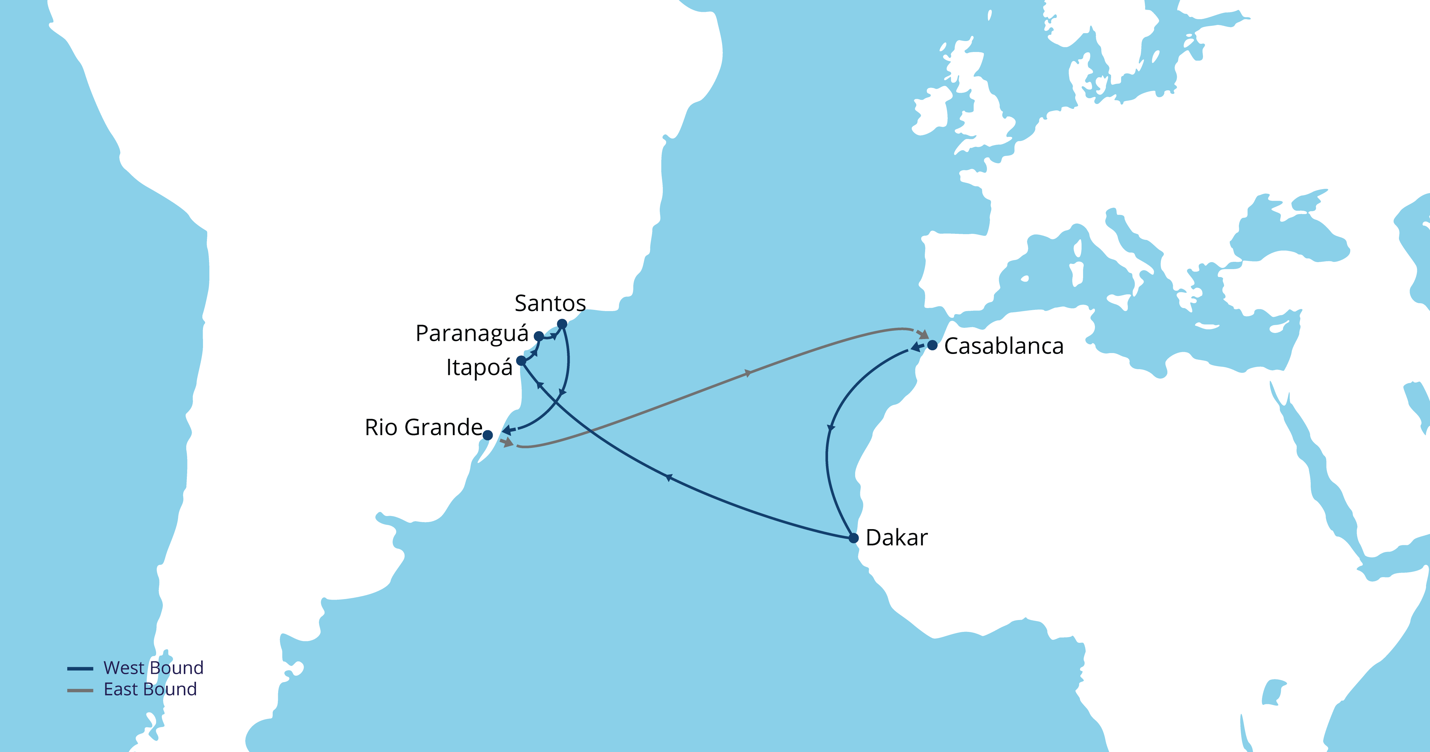 | MEDSA Service | Dakar | Itapoá | Paranaguá | Santos | Rio Grande |
